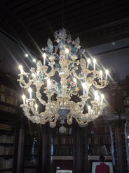 De la basilique Saint-Marc, sur laquelle j'ai été si sévère un peu plus haut, on admirera tout de même les mosaiques dorées (photo 175). Parmi les curiosités croisées dans nos visites autour de la place, notons ce lustre en verre de Murano (photo 184), on veut bien le même à la maison. De la place, on a également une belle vue sur l'église San Giorgio Maggiore (photo 183), plantée sur une île déserte (on se demande bien à quoi ça sert, mais bon). Sinon, on a encore vu des gondoles (photo 185), des églises (photos 186, 188 et 196) avec même un joli cloitre dans l'une d'elles (photo 190, c'est dans l'absurdement riche église de Santa Maria dei Frari). Etonnant, non ? Plus original, l'arsenal de Venise (photo 189) ne manque sûrement pas d'intérêt, mais je ne saurais vous le dire puisqu'on ne peut pas y entrer (c'est toujours une zone militaire). On a quand même eu droit à une visite d'un musée naval assez rigolo (plein de bateaux).