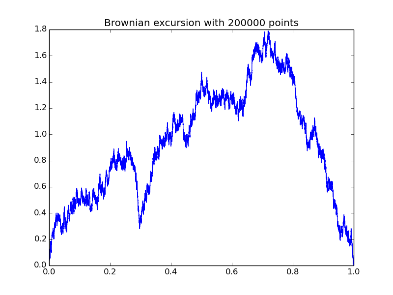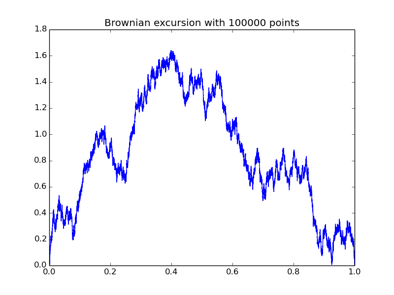 | A uniform tree with 100 000 edges and its coding excursion: |