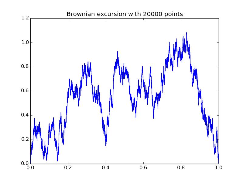 | A uniform tree with 50 000 edges and its coding excursion: |