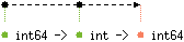 int64of signed 64-bit integers. Unlike the built-ininttype, the typeint64is guaranteed to be exactly 64-bit wide on all platforms. All arithmetic operations overint64are taken modulo 264Performance notice: values of type