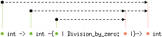 val ( / ) : 'a int -> 'b int -{'c | Division_by_zero: 'c |}-> 'a int