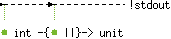val print_int : !stdout int -{!stdout ||}-> unit