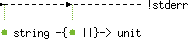 val prerr_string : !stderr string -{!stderr ||}-> unit