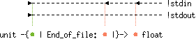 val read_float : unit -{[< !stdout, !stdin] | End_of_file: !stdin |}->