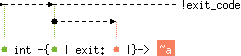 val exit : !exit_code int -{'a | exit: 'a |}-> 'b