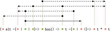 'a t -{'b | 'c |}-> 'e bool