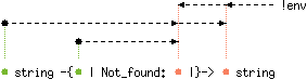 val getenv : 'a string -{'b | Not_found: 'b |}-> 'c string
