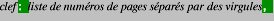 dans l'ordre d'impression des pages. La table d'index est sous la forme :