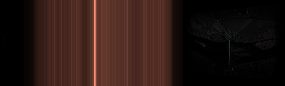 In fact most transmitted wave goes away, and things are even worse if surface is smooth, in that case the surface behave as a mirror and the light is reflected to the sky on the right hand side of the picture. This explains why smooth surface (such as the water in the river) appears darker than the rough surfaces (as forest or urban areas). It worth noting that turbulence on the water flow after the bridge (on the right of it, water flows from left to right) causes a lighter shade! On the image we can also notice that the overall length of the echo is twice the length of the illuminated area, this is again a consequence on the fact that light has to travel two ways forth and back. Dynamical aspect of the back-scattering phenomenon is visually interesting, click here to see a (550kB) film showing it (if it fails try this link, beware, this is an oddly shaped film 914×276 you might have to disable "aspect ratio" function of your visualiser application, I also suggest to set the "original size" option)
