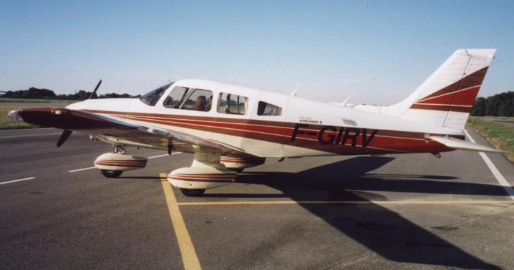 F-GIRV (Romeo-Victor): A very common Piper PA28, heavy " stable, as I love'em. But why the hell did their designer assumed an height-footer pilot! This means that under strong sidewind conditions, landing is either very rought (I can't push the pedal to endcourse) or blind (if I push the pedal to the end my eyes are below the instrument board). I also flown their sisters F-GIEQ and F-BLYP (I should say the grand-mother for the latter) the Yankee-Papa having the interesting feature (from the human-machine interface viewpoint) of the roof located horizontal crank for the trim (clockwise = nose up, counterclockwise = nose down). |