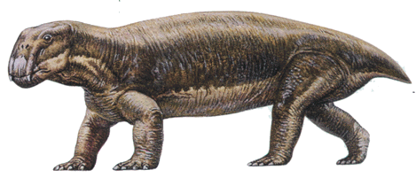 Les "reptiles mammaliens" sont les principales victimes de la crise Permo-Triasique pour les faunes de vertébrés terrestres. Au début du Trias, on ne rencontre quasiment plus qu'un seul Genre de Dicynodonte, de taille moyenne, Lystrosaurus (ci-dessous).