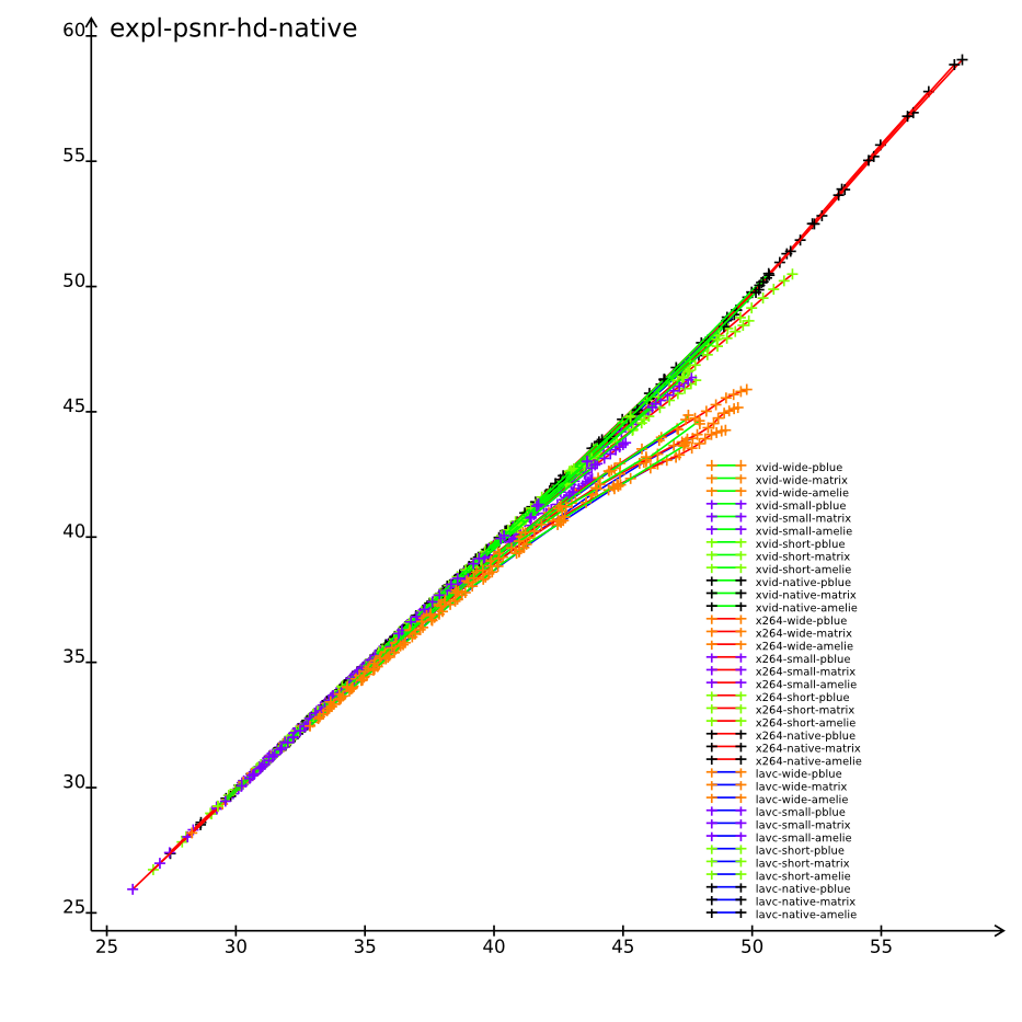 In the rest of the article, we will use mostly the HD correlation curves, but we will try to collate them against the native PSNR curves.