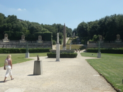 Pour notre dernière journée à Florence, nous passons de l'autre côté de l'Arno, avec comme étape principale le Palazzo Pitti (photo 132, vu de dos). Pour changer, pas mal de musées, et une détente bienvenue ensuite dans les très beaux jardins de Boboli (photo 131), où on croise de drôles de choses, notamment des sculptures contemporaines (photo 133), et d'autres d'époque mais néanmoins curieuses (la fontaine au gros tout nu, photo 134), sans parler de la très kitsch grotte artificielle (photo 135). Et puis l'un des intérêts de passer le fleuve, c'est de monter vers l'église de San Miniato (photo 137) pour avoir une vue imprenable sur la ville (photo 138). D'ailleurs, on y est restés jusqu'au coucher du soleil, qui a un peu eu le mauvais goût de se planquer derrière les nuages (photo 141), mais qui réserve quand même quelques belles vues sur l'Arno (photo 142). Et pour finir, un dernier coup d'oeil au Duomo, qui est quand même la plus belle perle de Florence, qui en comporte pourtant un sacré lot (photo 140).