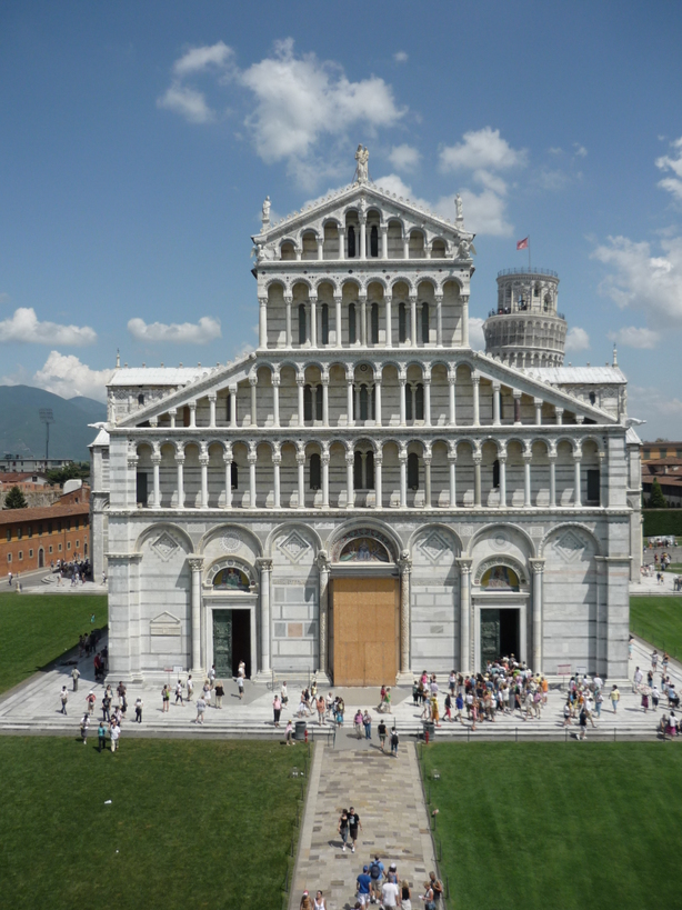 Première excursion depuis Florence, un classique du tourisme, la bonne ville de Pise, où se trouve la tour (photo 147), mais pas seulement. La ville elle-même est loin d'être moche, et sur la place des miracles, outre la tour, on trouve un cimetière fort charmant (photo 148), un baptistère qui vaut le coup d'oeil (photo 146), et surtout une superbe cathédrale (photo 149). Pour une fois, vous aurez même droit à des photos d'interieur (photo 150), avec notamment un plafond surprenant (photo 152), et une chaire sculptée magnifique (photo 151). Bon, de toute façon, cette tour, si elle n'était pas penchée (photo 147), en parlerait-on autant ? Allez, on va l'aider en lui donnant une petite poussette (photo 145). Et après un petit tour devant l'ahurissant alignement de boutiques de souvenirs (qui vendent toutes les mêmes horreurs à des prix délirants), une dernière vue de la place (photo 153). Oh, et puis j'allais oublier LE monument à ne pas rater à Pise, c'est bien entendu l'ENS (photo 143). Eh oui, ils ont des Ecoles Normales Supérieures aussi, en Italie.