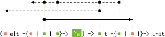 'a t -> 'h -{'i | 'c |}-> 'h