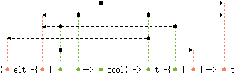 val filter : ('a elt -{'b | 'c | 'd}-> 'e bool) -> 'a t -{'b | 'c |}-> 'e t